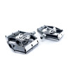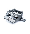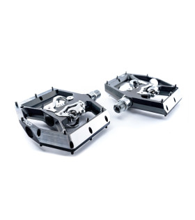 pedale a clic leggero con meccanismo a clip su entrambi i lati; compatibile con SPD; corpo in alluminio lavorato CNC e asse CrMo; bordi smussati per una migliore distanza in curva; ampia superficie di contatto; design ultra-ribassato; 16 perni antiscivolo sostituibili e regolabili; cuscinetti a cartuccia sigillati